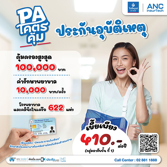 ประกันอุบัติเหตุค่ารักษา 10,000 บาท เบี้ย 410 บาท